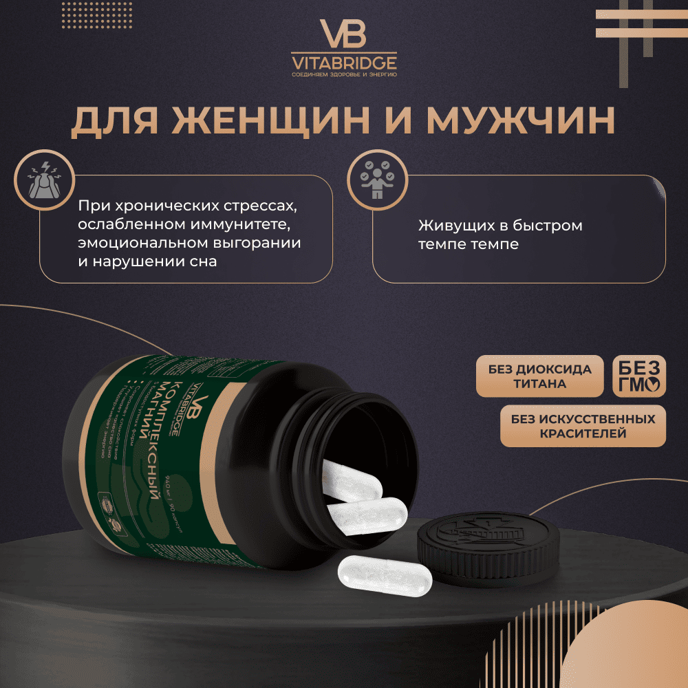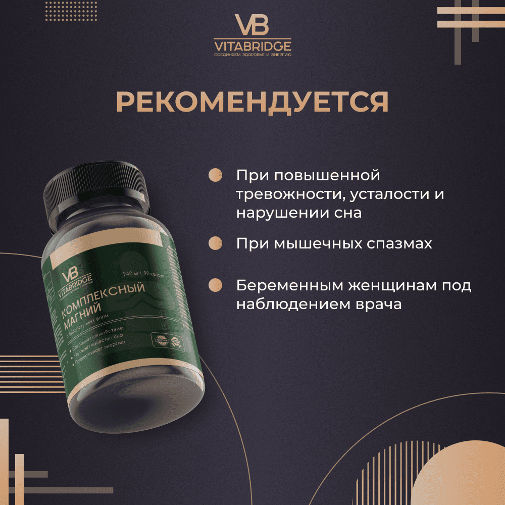 Магний – это жизненно важный минерал для человеческого организма, участвующий в свыше 300 биохимических процессах и обеспечивающий нормальное функционирование нервной, сердечно-сосудистой систем, поддерживающий плотность костей. Дефицит этого микроэлемента приводит к быстрой усталости, нарушениям сна, повышенной тревожности, снижению концентрации внимания. Синтез магния человек получает из пищи и БАДов.